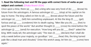 ইংরেজি ব্যাকরণের সবচেয়ে স্কোরিং অংশগুলোর একটি হলো Right Form of Verb। আজকের ব্লগে আমরা Dinajpur Board–2024 এর একটি ক্লোজ টেস্ট সম্পূর্ণভাবে সমাধান করব—প্রথমে প্রশ্ন, পরে...